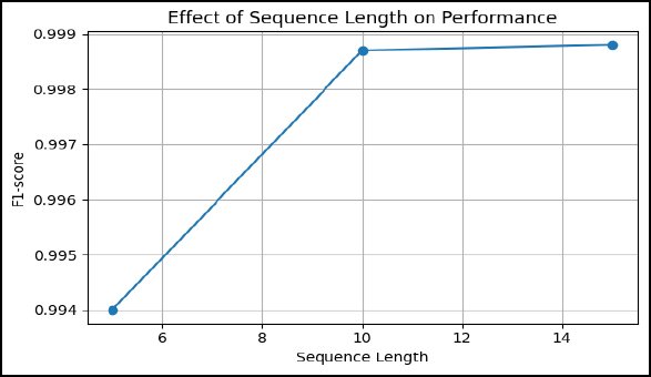 (Fig. 18) has demonstrated the effect of sequence length on detection performance. There is an increase in performance with an increase in sequence length, which increases to short windows, but beyond this, an increase no longer occurs, and the performance starts to plateau. This finding empirically verifies the selected length of sequence, which proves that this length of sequence gives adequate temporal context to measure the dynamics of an attack and does not waste computing resources.